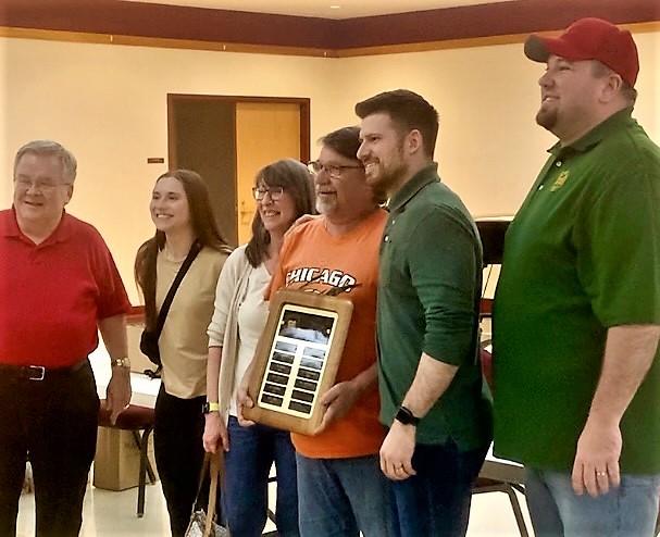 The 2023 Jim Hofbauer Award was presented to Dave Wieczorek. His wife and family were present for the ceremony. The presentation was made by 2022-2023 President Mike Zulevic.