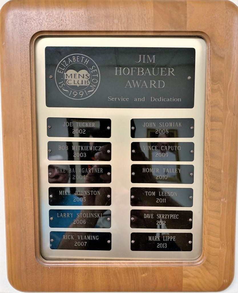 The award has been named in honor of a long-time (sadly, now deceased) member, Jim Hofbauer, whose activities in the men’s Club exemplified service and dedication.